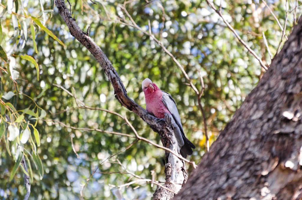 Bok had a meeting in the city centre on Wednesday, so we went to town with him. Downtown Perth is nice; there are large public areas, pedestrian-only streets, and plenty of interesting artwork. Most of the artwork didn’t need explaining to be enjoyed, which was a nice change. We also enjoyed watching local parrots as they went about doing whatever they were doing in the palm trees by the Swan River. Once again, the weather was good.